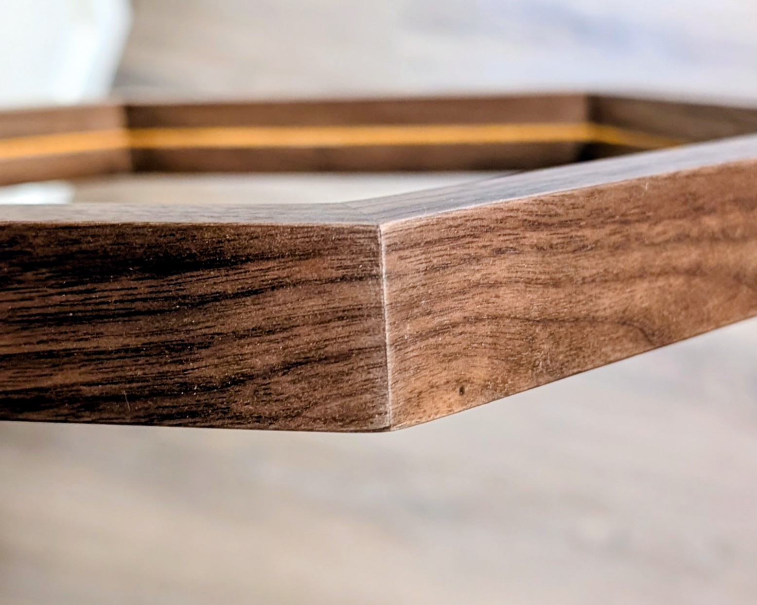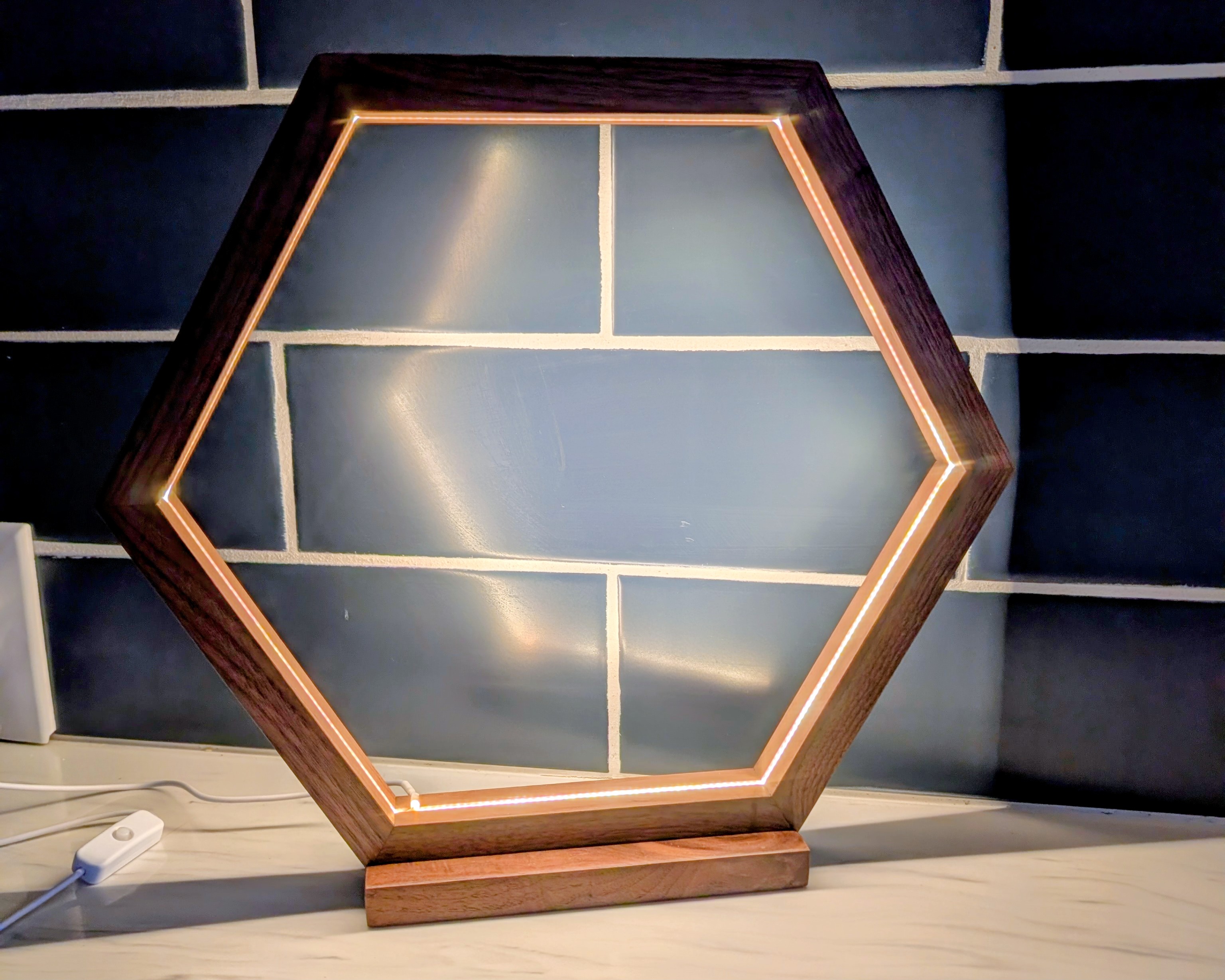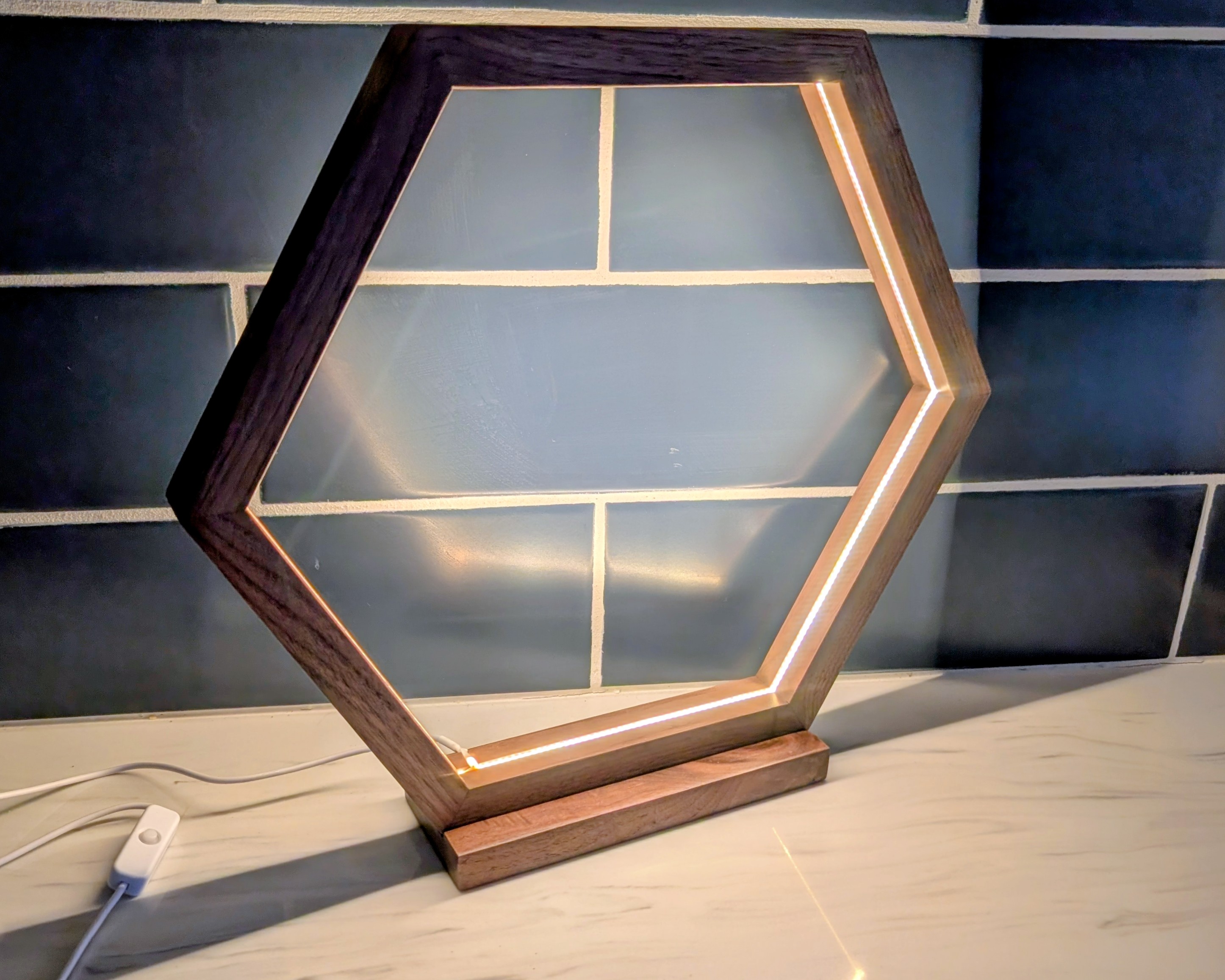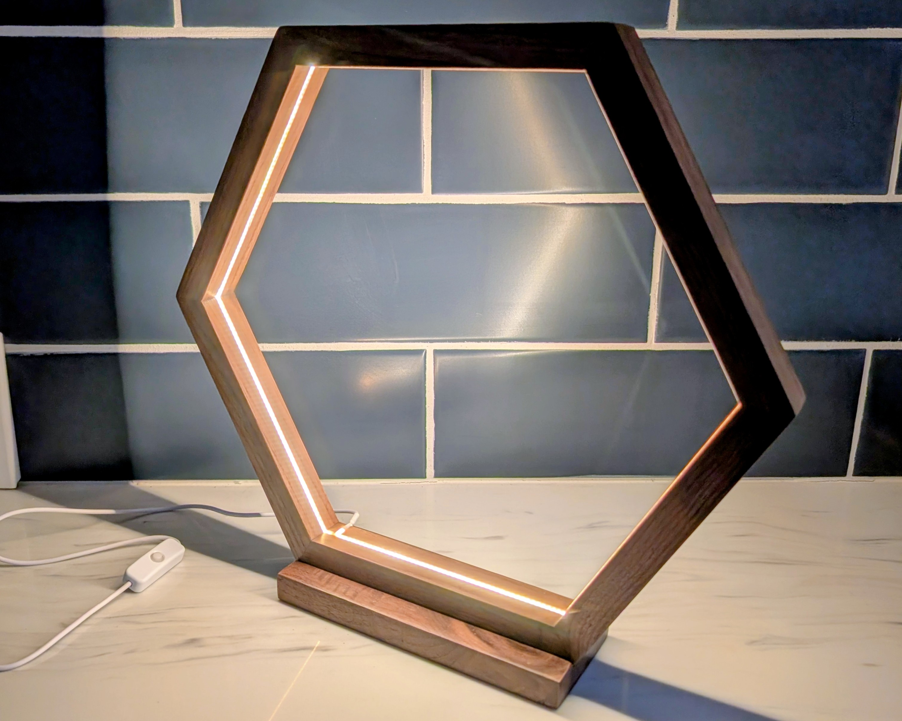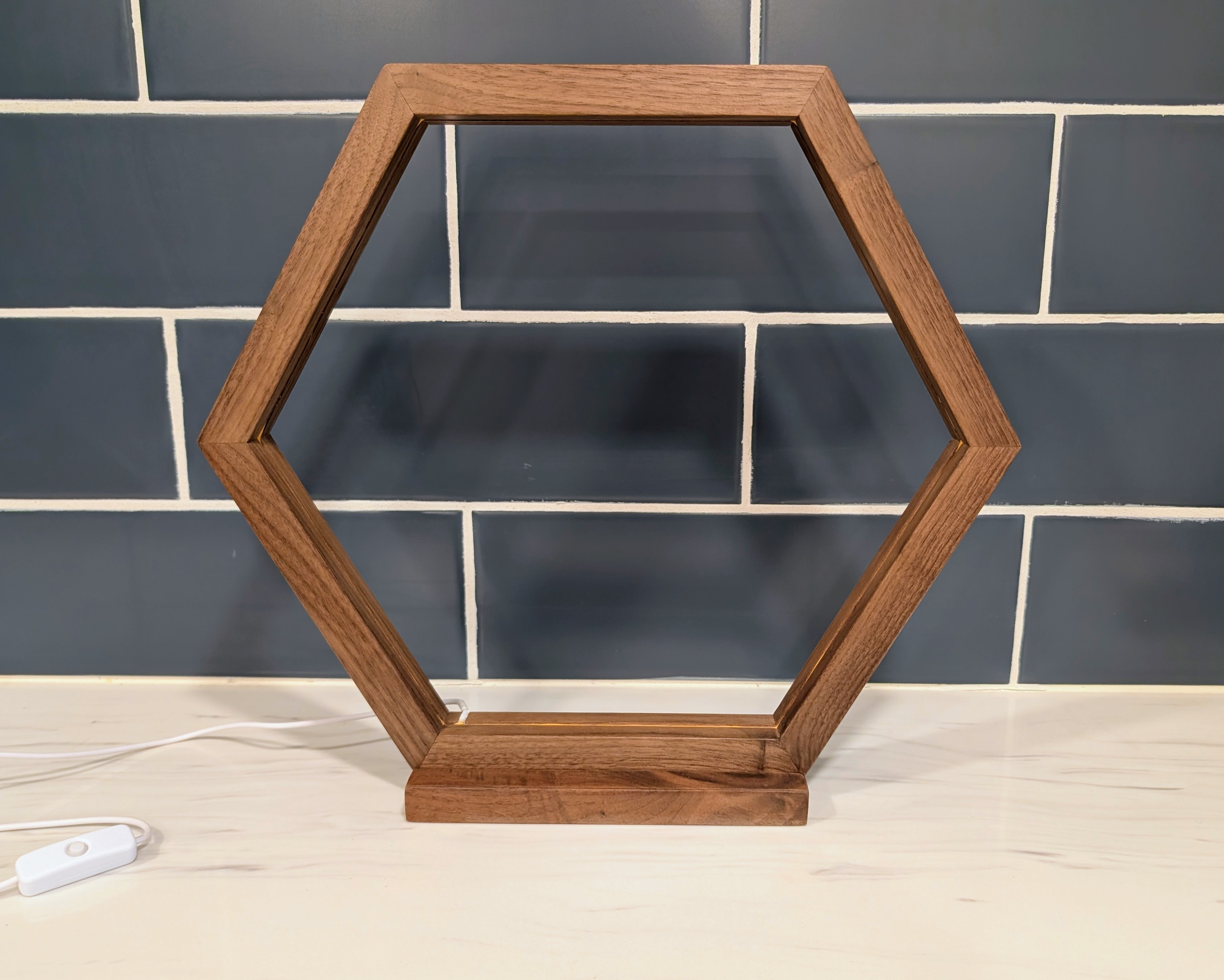 Elevate any space with this refined, handcrafted hexagon lamp made from rich walnut wood. Its clean geometric form and warm natural grain create a simple yet striking statement piece that complements modern, minimalist, and rustic interiors alike.